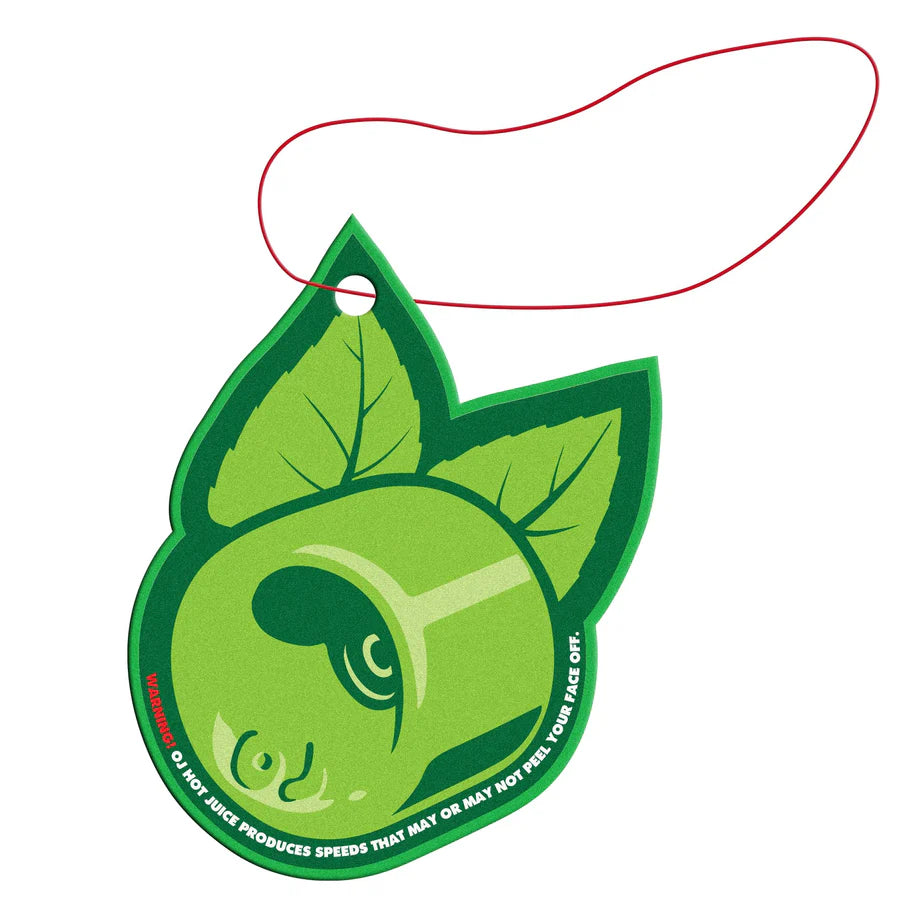 The OJ Cru-Zen Emerald Swirl Mini Super Juice 55mm, 78a wheels feature green swirl urethane and come with a pine scent OJ logo air freshener.