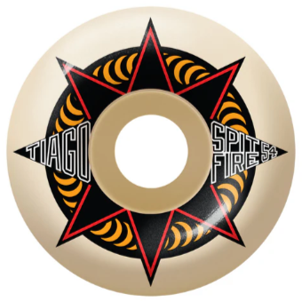- One (1) set of 52mm Spitfire Wheels Tiago Lemos Formula Four Sure Shot Classic Natural Skateboard Wheels - 99a; includes four (4) wheels